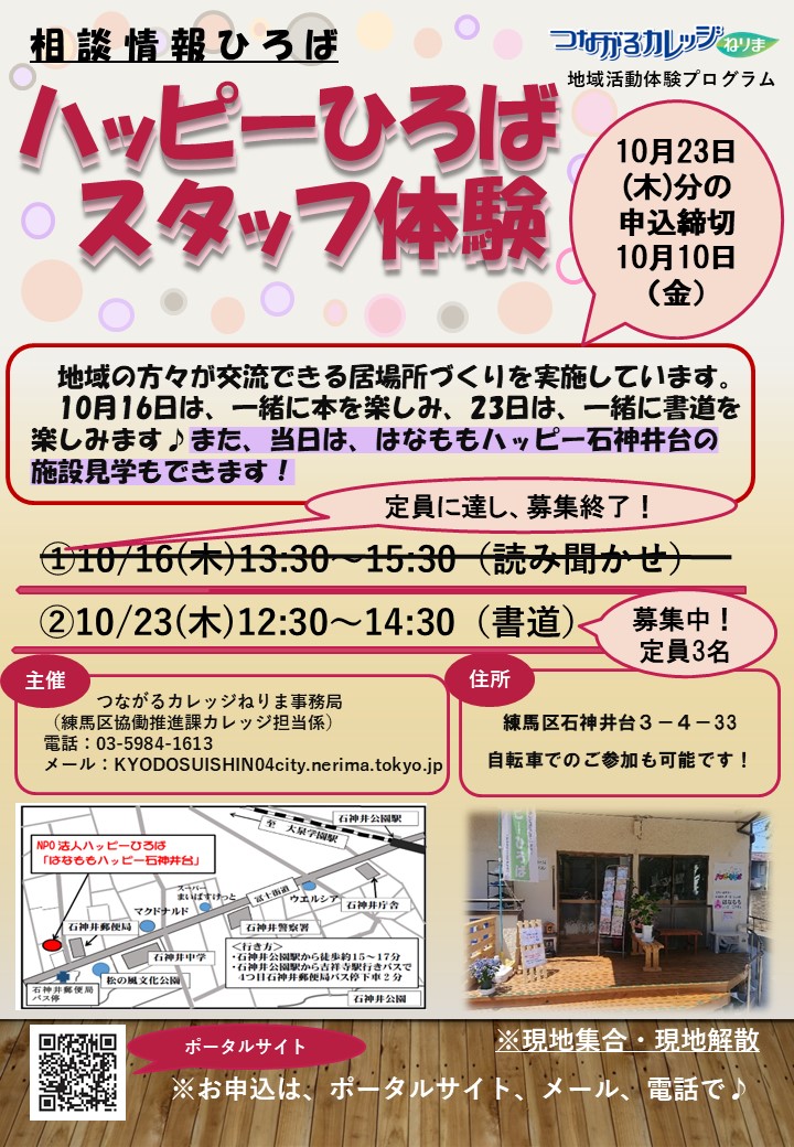 10/23 地域活動体験プログラム ハッピーひろばのスタッフ体験