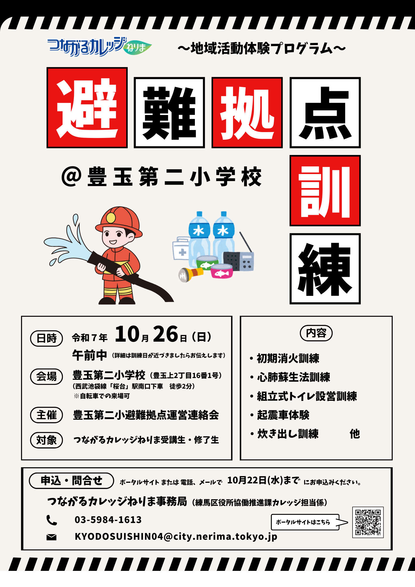 10/26(日)地域活動体験プログラム「避難拠点訓練@豊玉第二小学校」